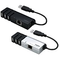 3ポートのUSBハブを搭載したUSB 2.0接続の100BASE-TX LANアダプタです。