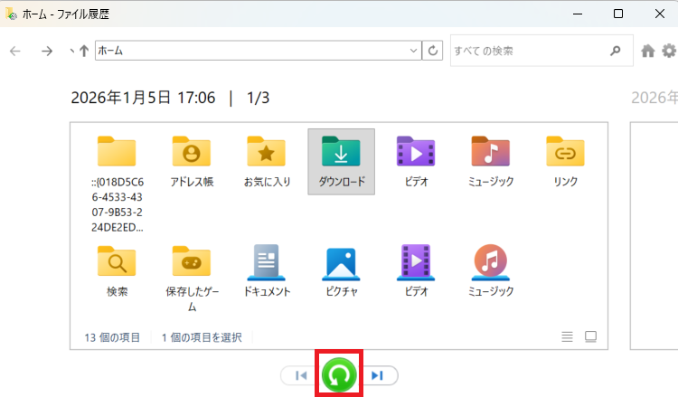 【ファイルの履歴から復元する方法】