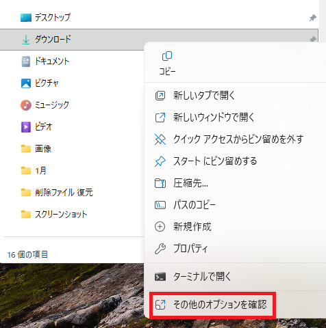 1.消えたデータが保存されていたフォルダを右クリックして、メニューから「その他のオプションを確認」→「以前のバージョンの復元」の順にクリックする