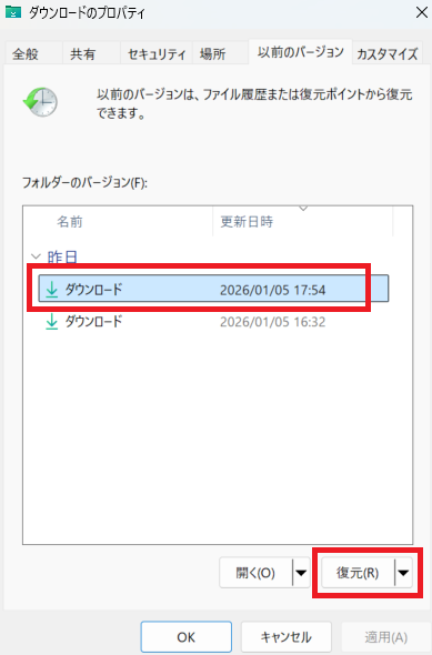 【「以前のバージョン」に戻す機能で復元する方法】