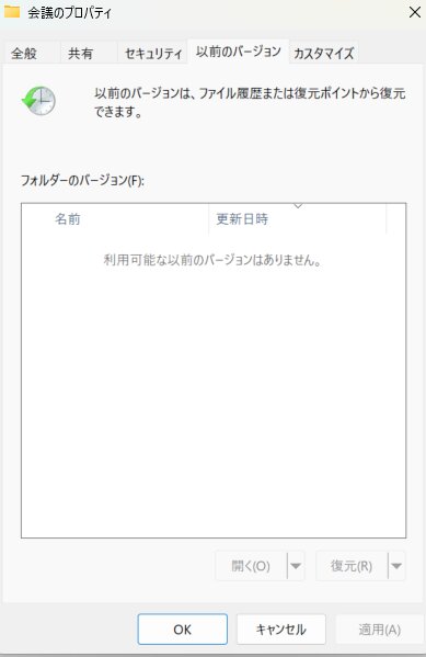 ※ファイル履歴機能が有効になっている場合、「フォルダーのバージョン」タブに複数のフォルダーが表示される。