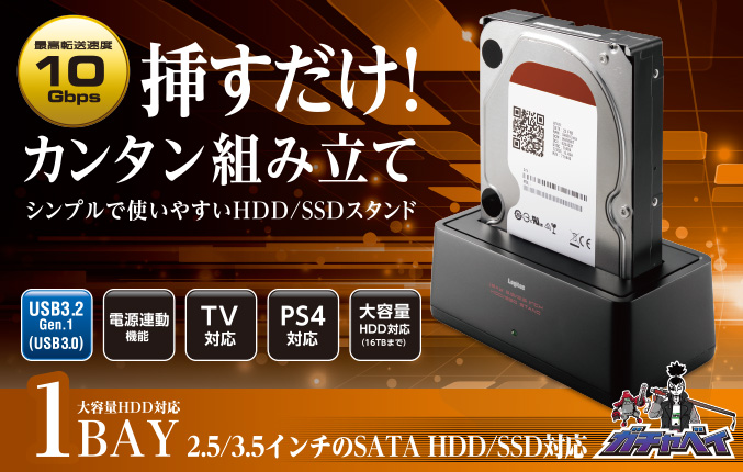 | LGB-1BSTU3 | USB3.2 Gen1(USB3.0)対応 1BAY HDD/SSDスタンド |