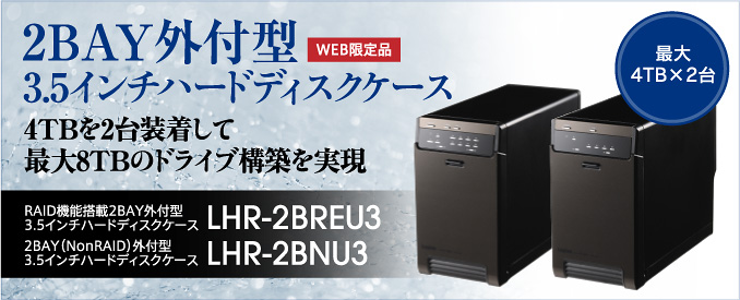 | LHR-2BREU3 | RAID機能搭載2BAY外付型3.5インチハードディスクケース | 4580333544502 | オープン | 3種類のRAID機能(JBOD/RAID0/RAID1)に対応 【販売終了】 |