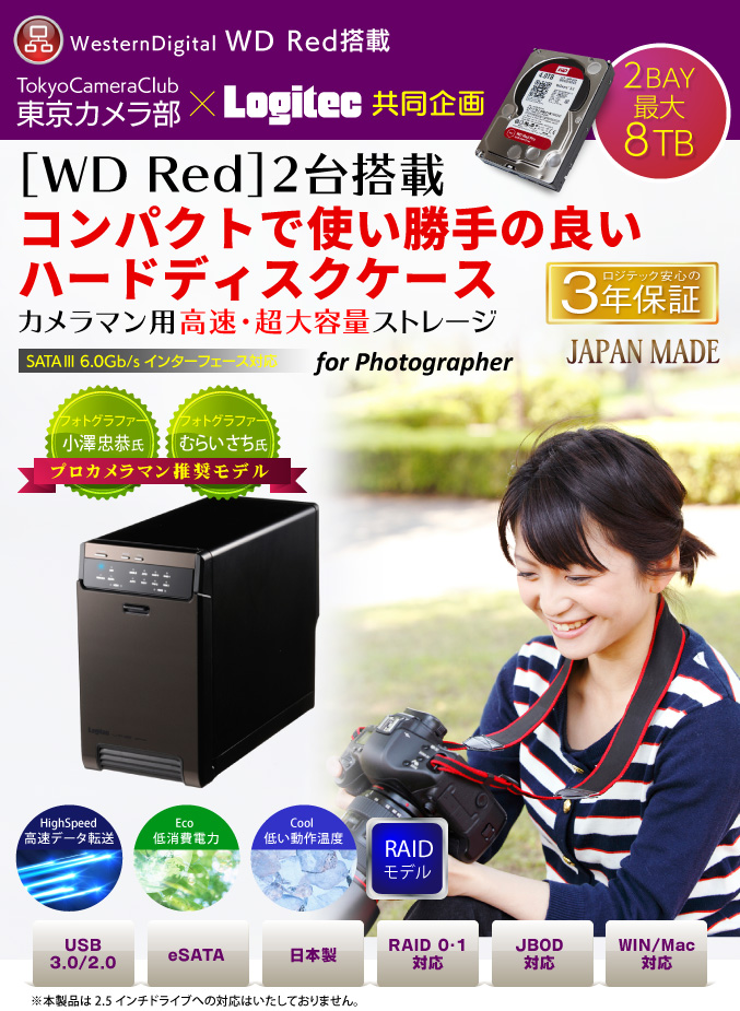 | LHR-2BRH60EU3WR | ロジテック×東京カメラ部共同企画 カメラマン用 大容量ストレージ 2bayケース+RED 3TB 2台 ※本製品はお客様による組み立てを必要とするモデルです (2BAYケース1台とWD RED2台をセットでお届けいたします) |
