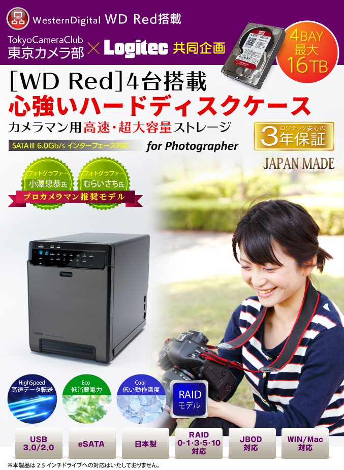 | LHR-4BRH12EU3WR | ロジテック×東京カメラ部共同企画 カメラマン用 大容量ストレージ 4bayケース+RED 3TB 4台 ※本製品はお客様による組み立てを必要とするモデルです (4BAYケース1台とWD RED4台をセットでお届けいたします) |