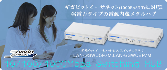 「LAN-GSW05P/M」および「LAN-GSW08P/M」はギガビットイーサネット(1000BASE-T)対応のスイッチングハブです。