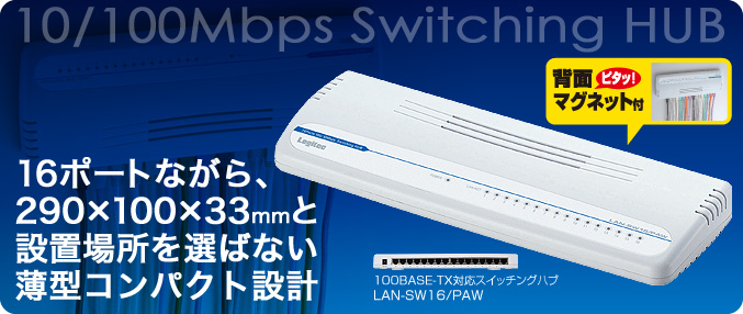 省エネ法に対応したコンパクトな16ポートスイッチングハブ