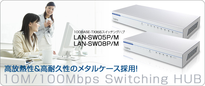 「LAN-SW05P/M」および「LAN-SW08P/M」は100BASE-TX対応のスイッチングハブです。