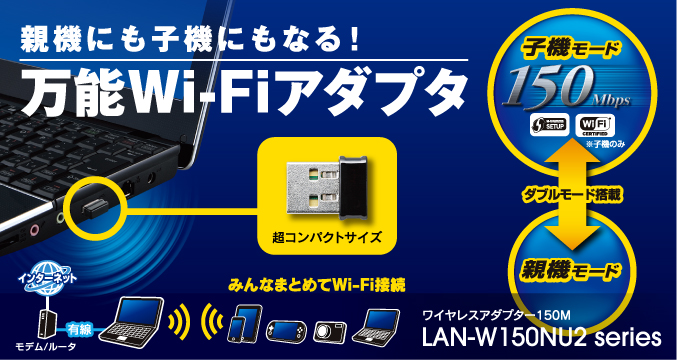 みんなまとめてWi-Fi接続親機にも子機にもなる万能Wi-Fiアダプタ