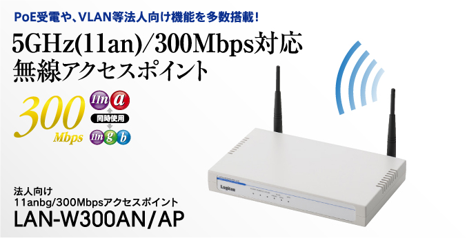 | LAN-W300AN/AP | 法人向け 無線LANアクセスポイント | 4992072049093 | ¥19,800(税別) |