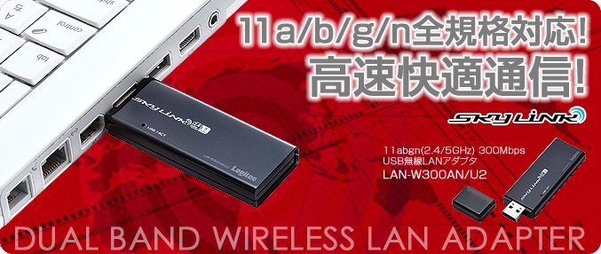 | LAN-W300AN/U2 | 無線LANアダプタ/11a/n/g/b | 4992072053076 | ¥4,300(税別) | パソコン用 |