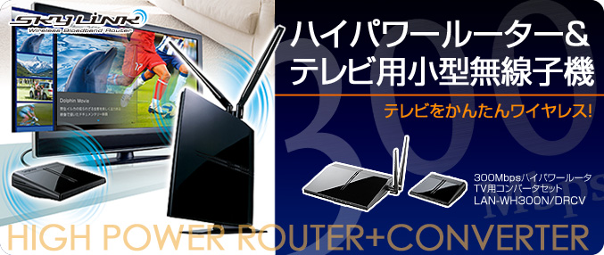 | LAN-WH300N/DRCV | 300MbpsハイパワールータTV用コンバータセット【送料無料】 | 4992072046238 | ¥10,100(税別) | プリンタ共有 ハイパワーアンテナ 300Mbps、子機付属 |