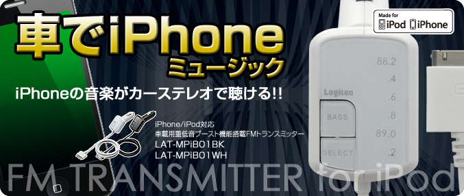 | LAT-MPiB01WH | iPhone/iPod専用FMトランスミッタ/重低音 ホワイト | 4992072042797 | オープン |
