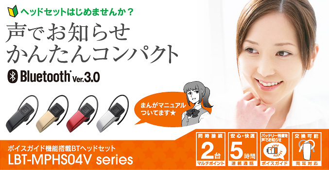 | LBT-MPHS04VSV | Bluetooth®3.0対応ハンズフリーヘッドセット シルバー | 4992072058590 | オープン |