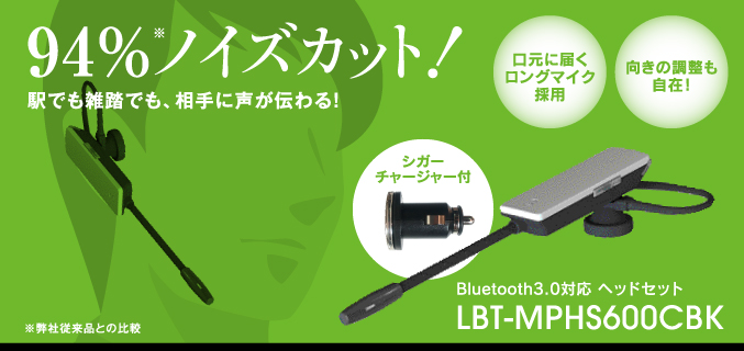 | LBT-MPHS600CBK | Bluetoothヘッドセット/USBシガーチャージャー付き | 4992072054950 | オープン |