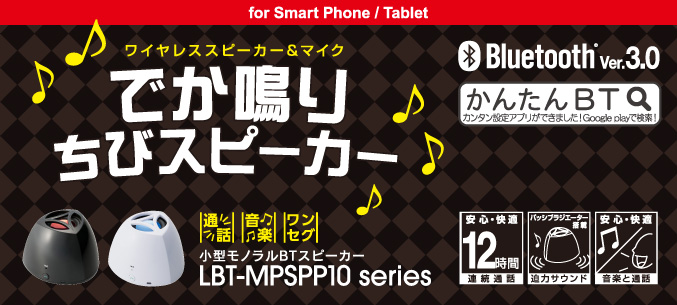 | LBT-MPSPP10BK | Bluetooth3.0対応の小型モノラルスピーカー | 4992072059634 | ¥4,800(税別) | ブラック |