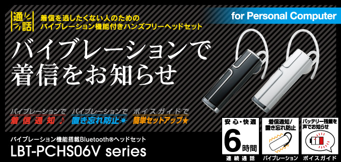 | LBT-PCHS06VWH | バイブレーション機能搭載のBluetooth®3.0対応ヘッドセット ホワイト | 4992072062092 | オープン |