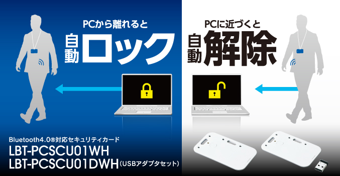 | LBT-PCSCU01WH | PCの自動ロック解除ができるBluetooth®4.0対応セキュリティカード | 4992072062597 | オープン | ニュースリリース | |