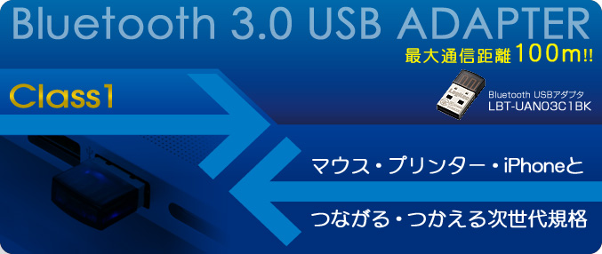 | LBT-UAN03C1BK | Bluetooth/USBアダプタ | 4992072046344 | オープン | Bluetooth 3.0 Class1 | |