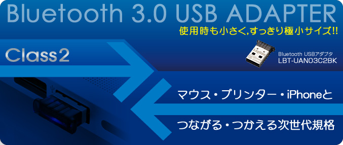 | LBT-UAN03C2BK | Bluetooth/USBアダプタ | 4992072046375 | オープン | Bluetooth 3.0 Class2対応 USBアダプタ | ||