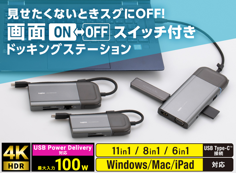 | LHB-LPMWP6U3SS | HDMI ON/OFF機能搭載 ドッキングステーション | 6in1 | 4580333618616 | オープン価格 | ニュースリリース |