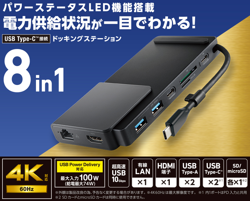 | LHB-PMP8U3PS | パワーステータスLED機能搭載 Type-C 8in1ドッキングステーション【量販向けモデル】 |