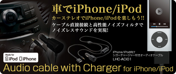 | LHC-ACi01 | iPhone/iPod用シガーチャージャー付きオーディオケーブル | 4992072044210 | オープン | iPod/iPhone用シガーチャージャーつきオーディオケーブル 販売終了 | ||||