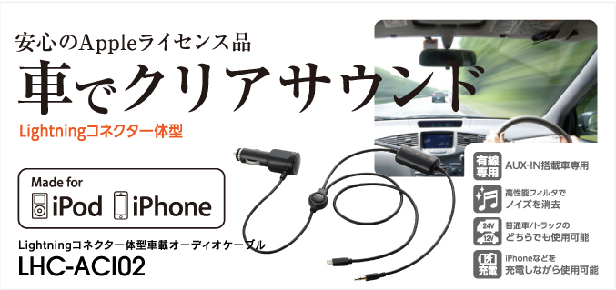 | LHC-ACI02 | Ligtning対応 車載オーディオケーブル | 4992072063433 | ¥5,490(税別) | ニュースリリース |