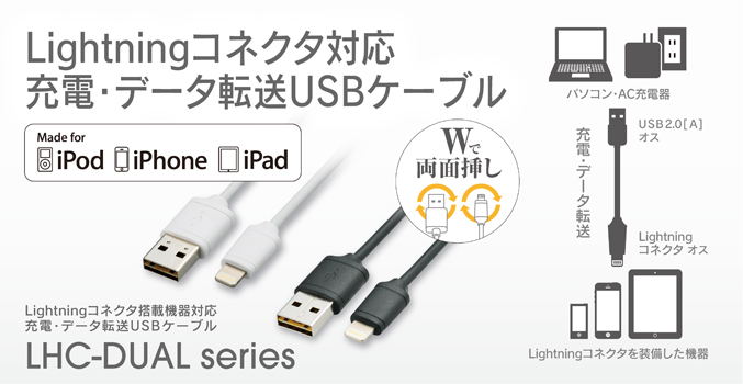 | LHC-DUAL03BK | 両面挿しLightningコネクタ対応ケーブル | 0.3m | 4992072066137 | オープン | ニュースリリース |