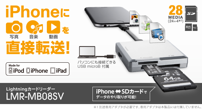 LMR-MB08SV Lightningカードリーダー 約5.5cm 4992072070646 12,430(税抜) ニュースリリース