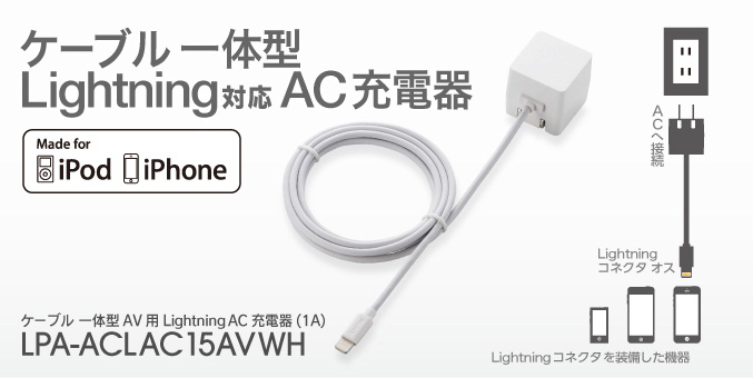 1.5m ケーブル一体型LightningAC充電器 4992072067745 4,770円(税抜) ニュースリリース