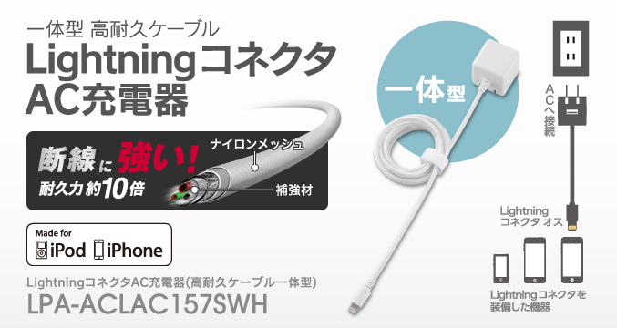 | LPA-ACLAC157SWH | LightningコネクタAC充電器 (高耐久ケーブル一体型) |