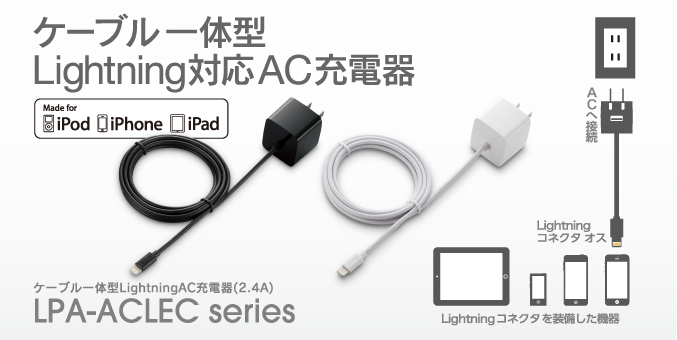 | ケーブル長 | LPA-ACLEC100BK : 1.0m LPA-ACLEC100WH : 1.0m LPA-ACLEC150BK : 1.5m LPA-ACLEC150WH : 1.5m |
