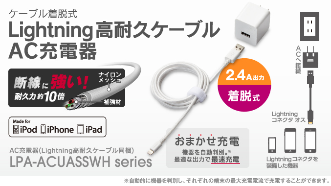 LPA-ACUAS108SWH Lightning2.4A AC充電器