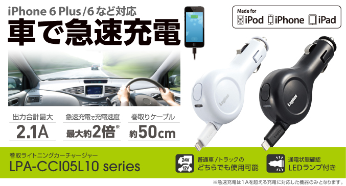 | LPA-CCI05L10BK | ブラック | ライトニング車載充電器 0.5mリール 2.1A |