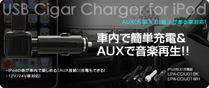 | LPA-CCIU01WH | シガーバッテリーチャージャー/iPod用 | 4992072018228 | オープン | ホワイト 販売終了 |