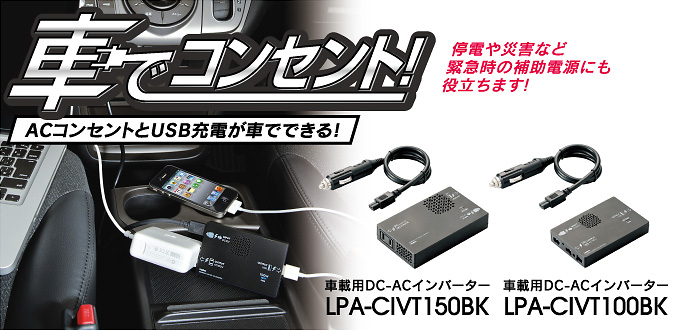 | LPA-CIVT150BK | DC・ACインバーター/車載用/USBポート搭載 | 4992072057845 | オープン | 150W |