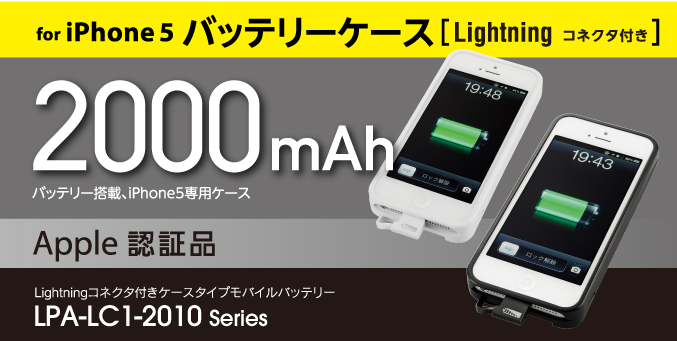 | LPA-LC1-2010BK | Lightningコネクタ付きケースタイプ モバイルバッテリー |