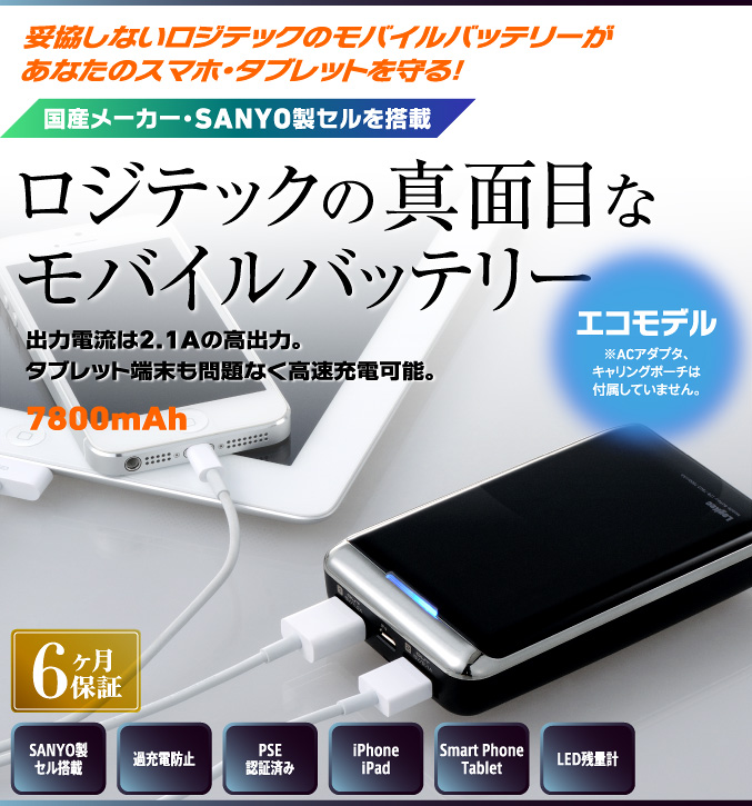| LPB-78U2BKL | 大容量モバイルバッテリー (7800mAh) |