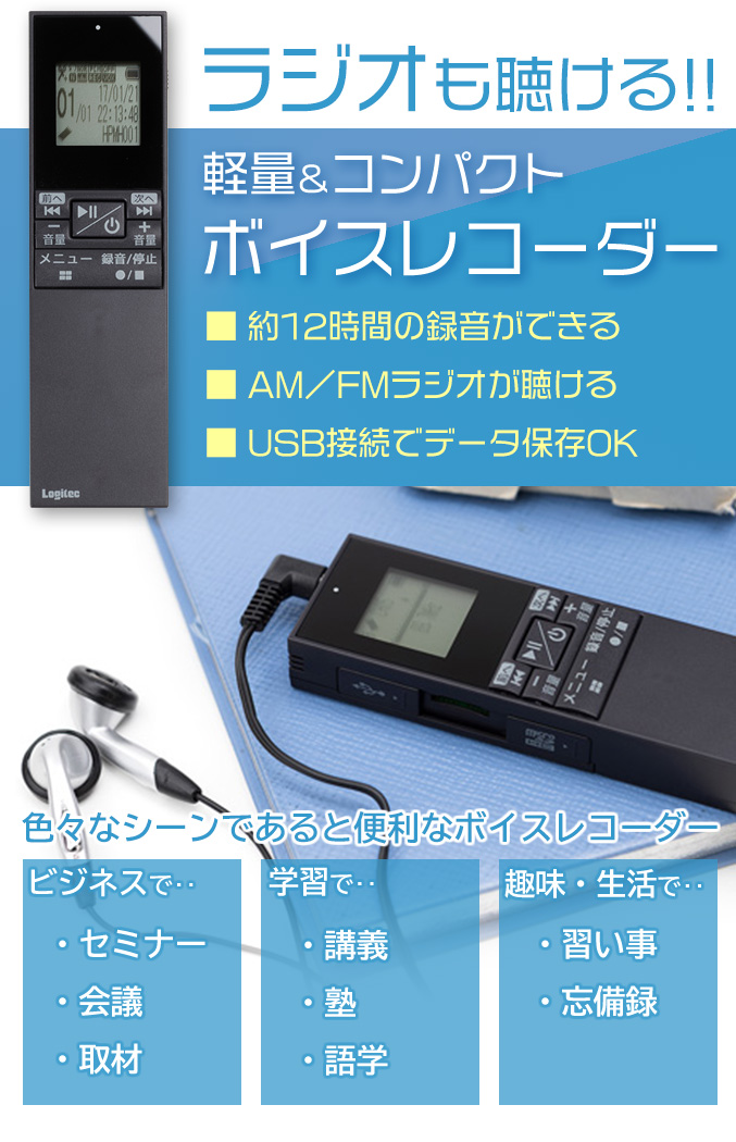 LRT-FMVR01BK FMラジオ&ボイスレコーダ 4580333568904 7,389円(税抜) ニュースリリース
