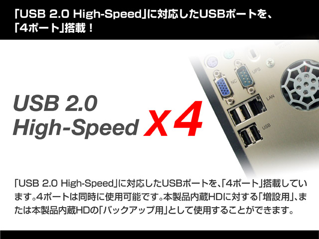 | USBポート | (UPS、バックアップユニット接続用) 4ポート搭載 | ||