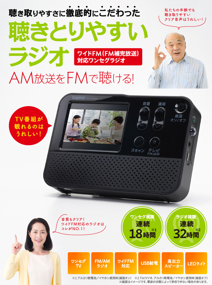 | LTV-1S280P | 2.8インチ液晶搭載 ワンセグテレビ付きFM/AMラジオ |