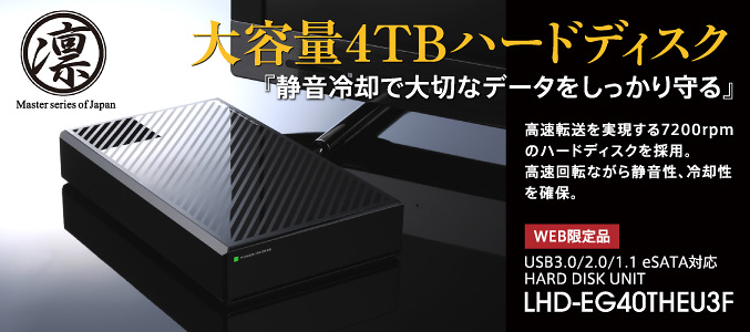 | LHD-EG40THEU3F | USB3.0&eSATA対応FAN搭載 4TBハードディスク | 4580333545684 | オープン | 【WEB直販限定品】 |
