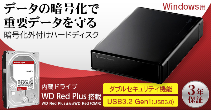 | LHD-EN20U3BSR | 2TB | WD Red Plus搭載 暗号化外付けハードディスク |