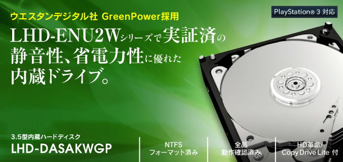 省電力性と静音性に優れたハードディスクとして価格.com プロダクトアワード2010 外付けハードディスク部門 銀賞、ならびに2011年度の楽天年間ランキング パソコン・周辺機器部門で1位に入賞したLHD-ENU2Wシリーズ」に搭載している、ウエスタンデジタル製GreenPowerドライブを採用したモデルです。