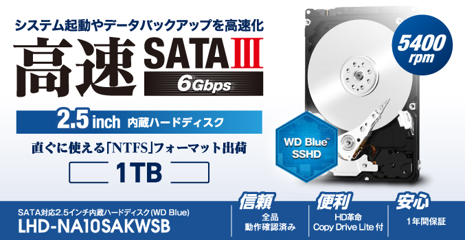 | LHD-NA10SAKWSB | 1.0TB | SATA対応2.5インチ 内蔵ハードディスク(WD Blue) |