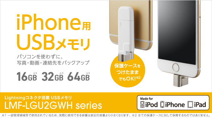 | 型番/容量 | LMF-LGU216GWH:16GB LMF-LGU232GWH:32GB LMF-LGU264GWH:64GB |