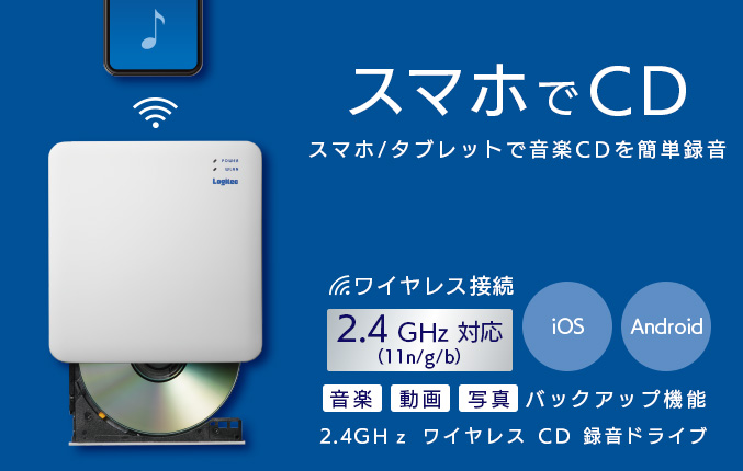 ワイヤレス接続でパソコン不要スマホでかんたんCD録音