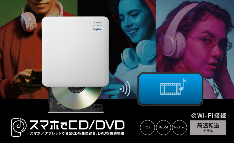| LDR-SM5WUVWH | 【量販】 スマホ用CDレコーダ/DVDプレーヤ 「スマホでCD/DVD」ワイヤレス・高速モデル |