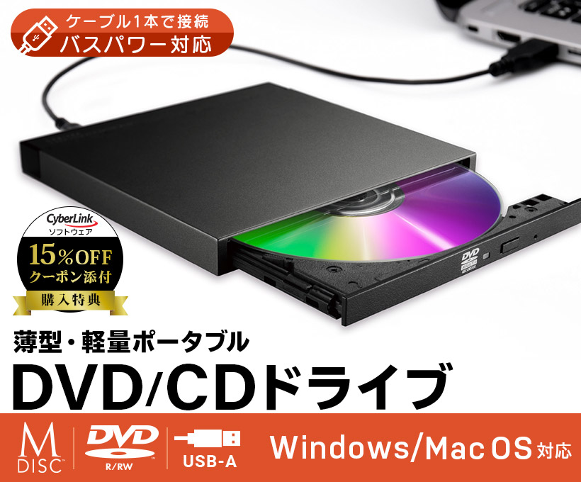 DVDの視聴に限らず、CDの再生や音楽プレイヤーへのデータ転送、ディスクへのデータ書き込み、バックアップなどの用途でお使いいただけます。